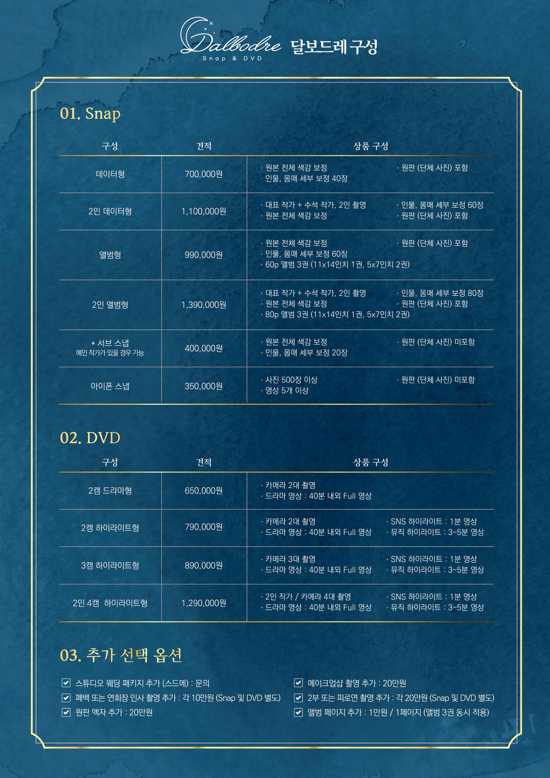 대상 : 달보드레 스냅 본식 스냅 또는 DVD 예약 고객